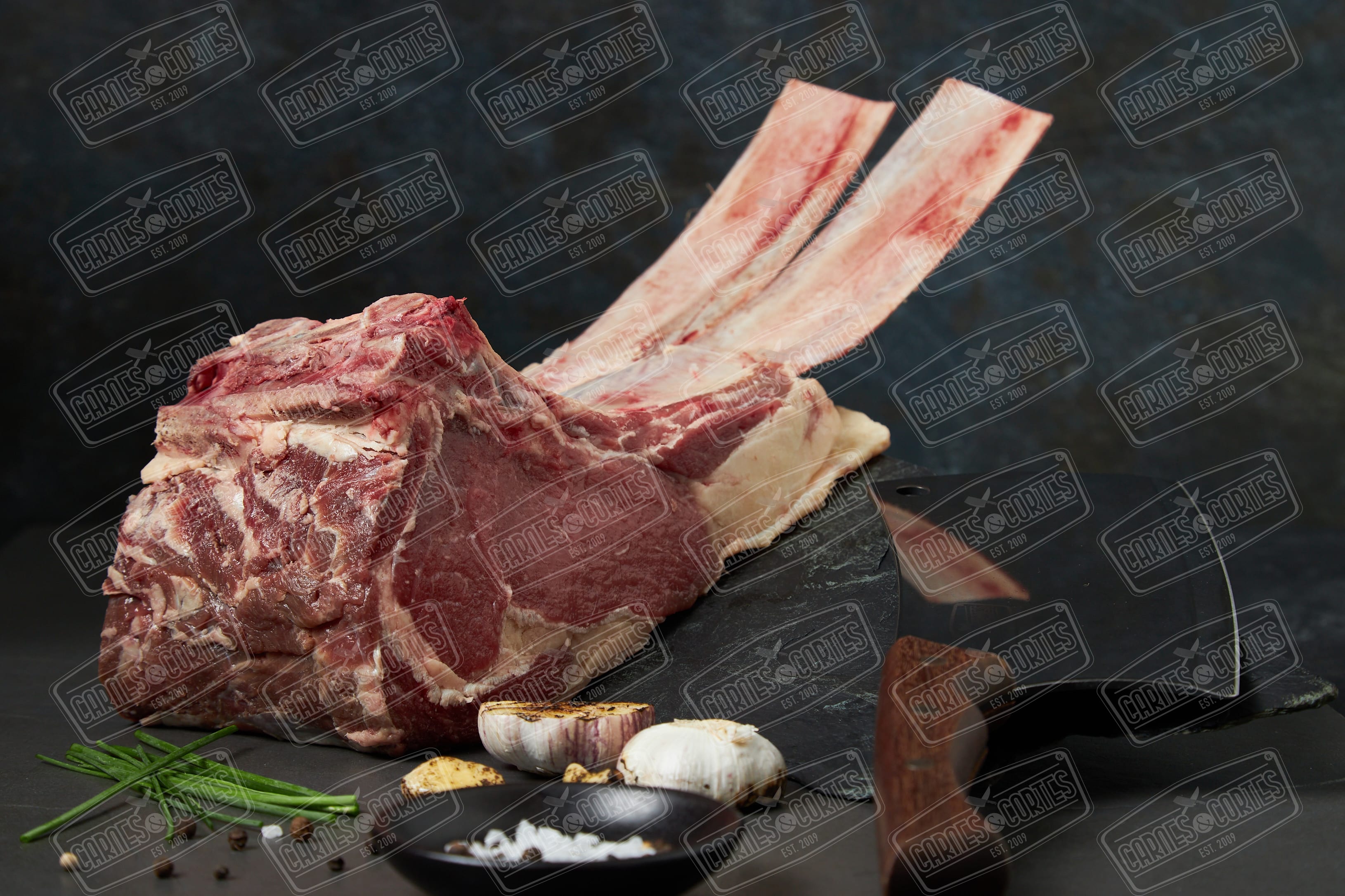Corte gigante con hueso, extremadamente jugoso y de impacto total en parrilla.